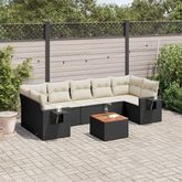 Salon de jardin 8 pcs avec coussins noir resine tressee