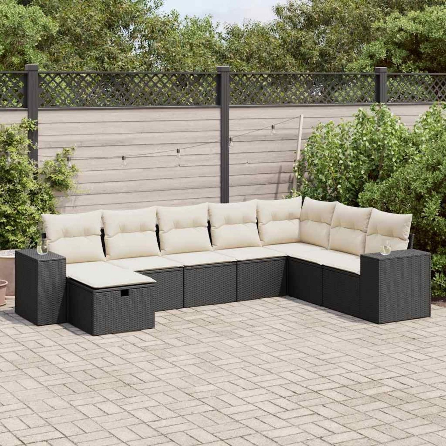 Salon de jardin 8 pcs avec coussins noir resine tressee