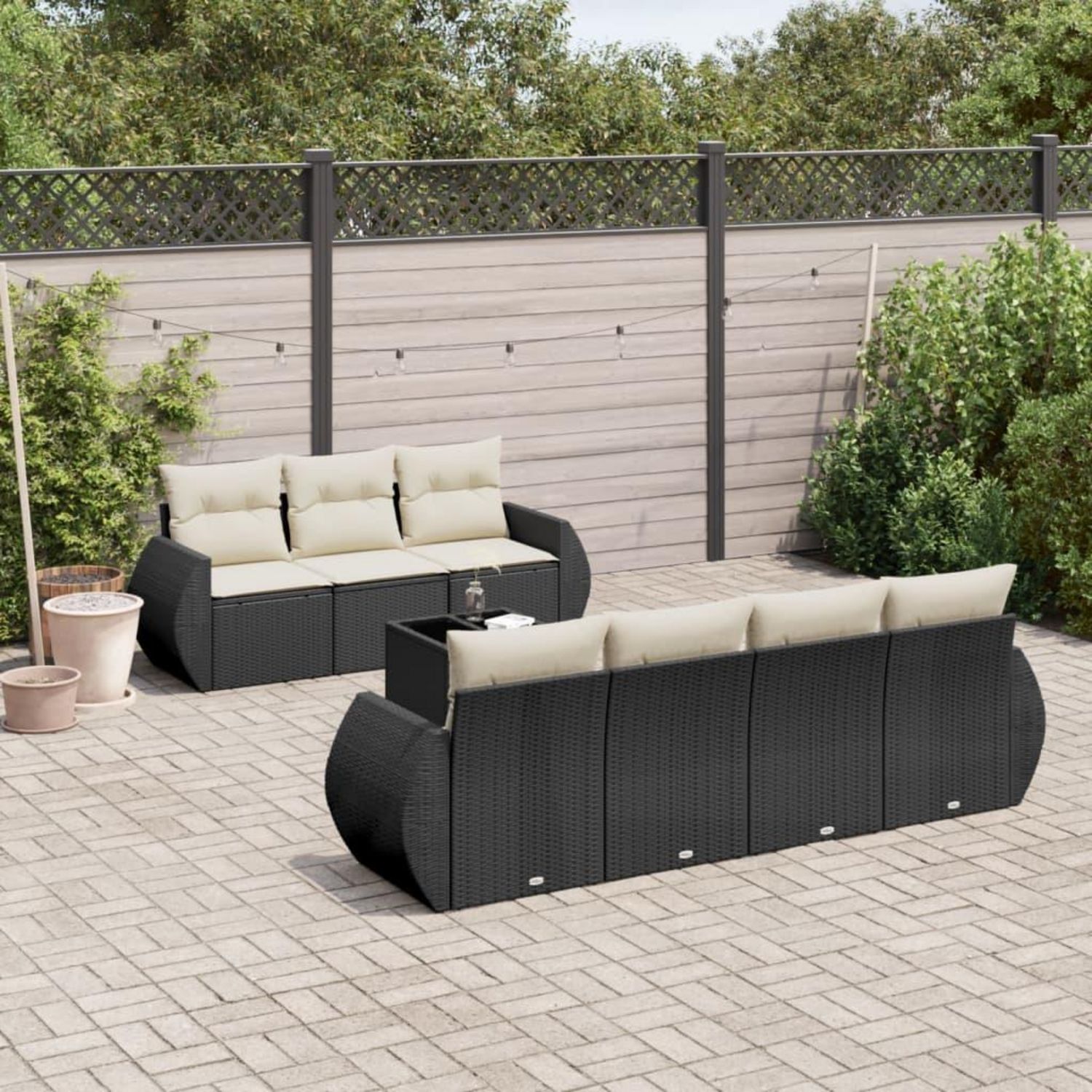 Salon de jardin 8 pcs avec coussins noir resine tressee