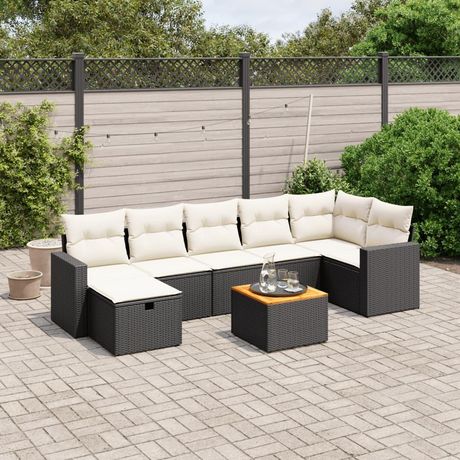 Salon de jardin 8 pcs avec coussins noir resine tressee
