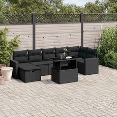 Salon de jardin 8 pcs avec coussins noir resine tressee