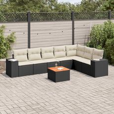 Salon de jardin 8 pcs avec coussins noir resine tressee