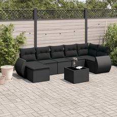 Salon de jardin 8 pcs avec coussins noir resine tressee