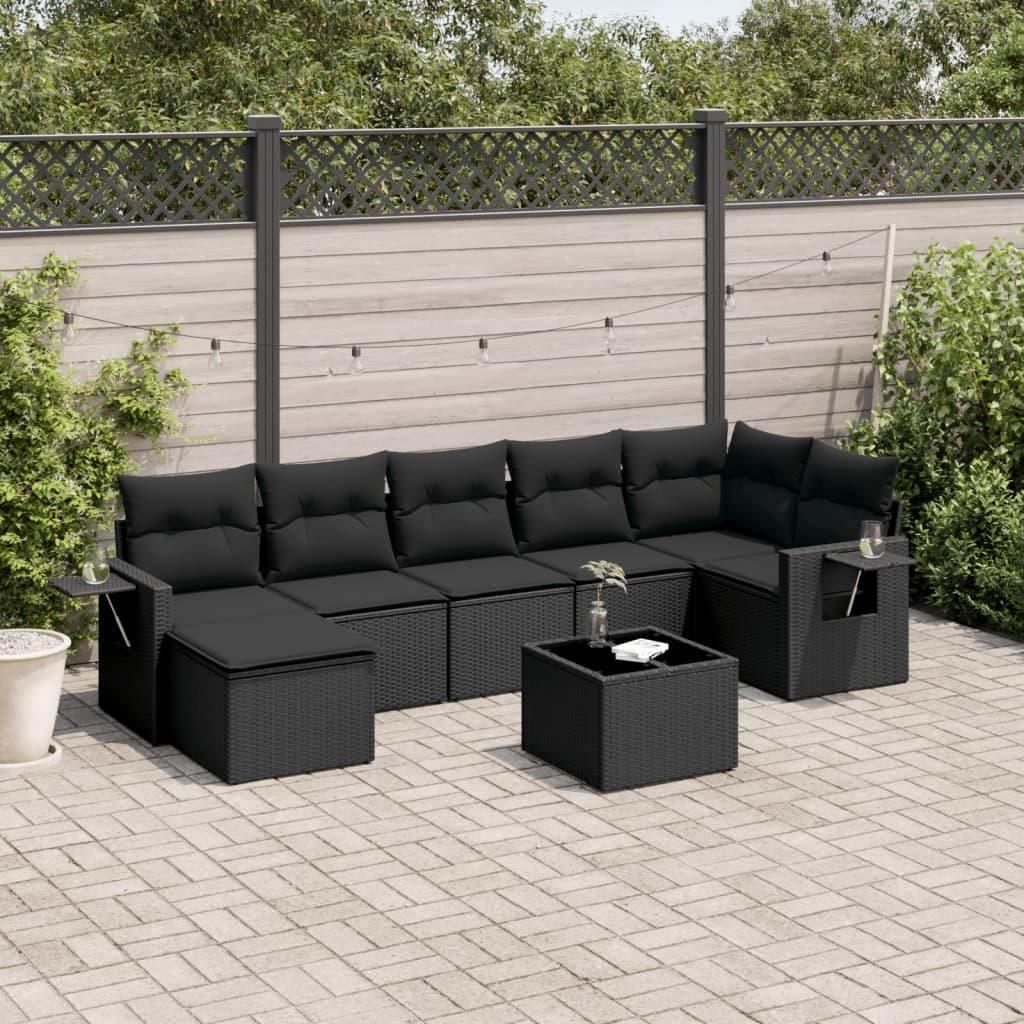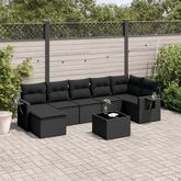 Salon de jardin 8 pcs avec coussins noir resine tressee