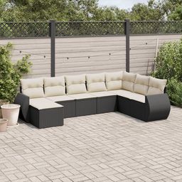 Salon de jardin 8 pcs avec coussins noir resine tressee