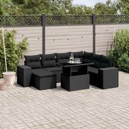 Salon de jardin 8 pcs avec coussins noir resine tressee