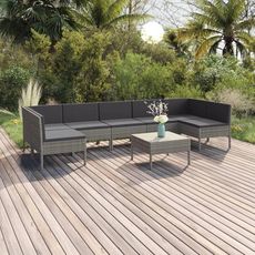 Salon de jardin 8 pcs avec coussins resine tressee gris