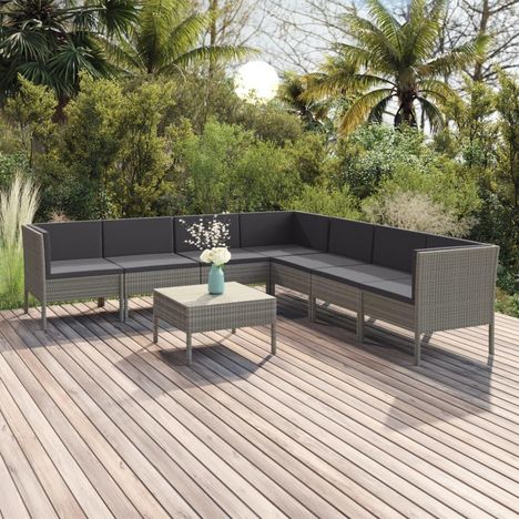 Salon de jardin 8 pcs avec coussins resine tressee gris