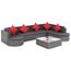 Cet ensemble de canapes en resine tressee, compose de 2 canapes d'angle, 3 canapes centraux, 1 table basse, 2 tabourets demi-ronds, 5 oreillers rouges accrocheurs et 14 coussins, offrira un espace d'assise elegant pour votre jardin ou votre patio.