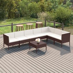 Salon de jardin 8 pcs avec coussins resine tressee marron