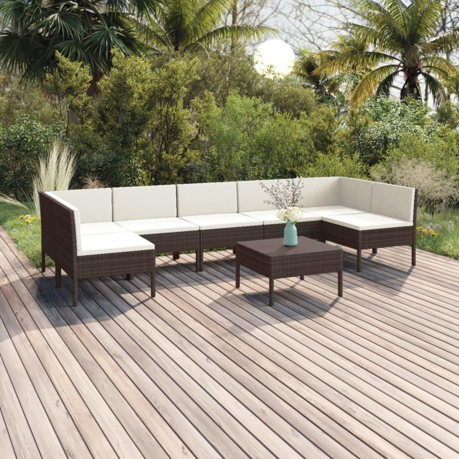 Salon de jardin 8 pcs avec coussins resine tressee marron