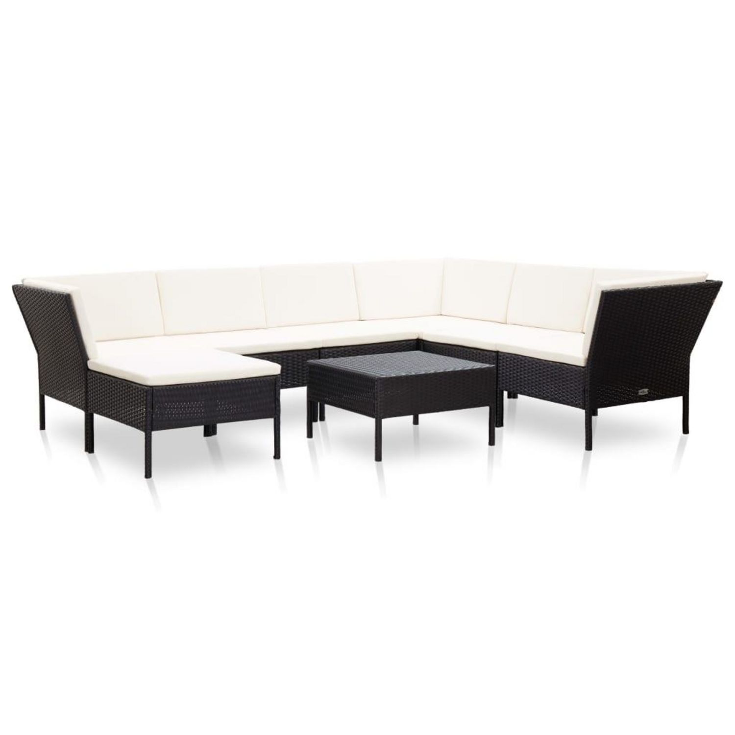 Salon de jardin 8 pcs avec coussins resine tressee noir