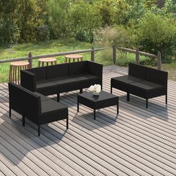 Salon de jardin 8 pcs avec coussins resine tressee noir