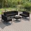 Avec de la resine tressee resistante aux intemperies, l'ensemble de meubles d'exterieur est facile a nettoyer et a entretenir. Le cadre en acier enduit de poudre l'ensemble de salon de patio stable et solide. Equipe de coussins epais et moelleux, ce salon de jardin offrira un confort d'assise ultime. Les housses en polyester, faciles a nettoyer, peuvent etre retirees et lavees. De plus, grace a leur conception legere et modulaire, vous pouvez deplacer cet ensemble dans votre maison avec une grande facilite.