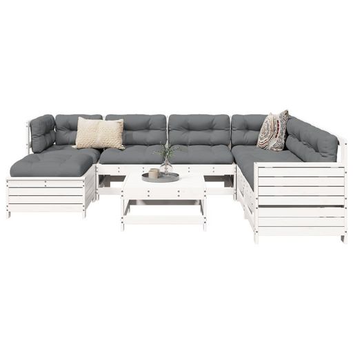 Salon de jardin 8 pcs blanc bois de pin massif