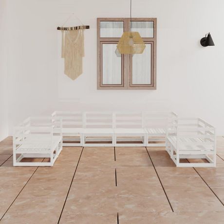 Salon de jardin 8 pcs Blanc Bois de pin massif