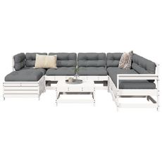 Salon de jardin 8 pcs blanc bois de pin massif