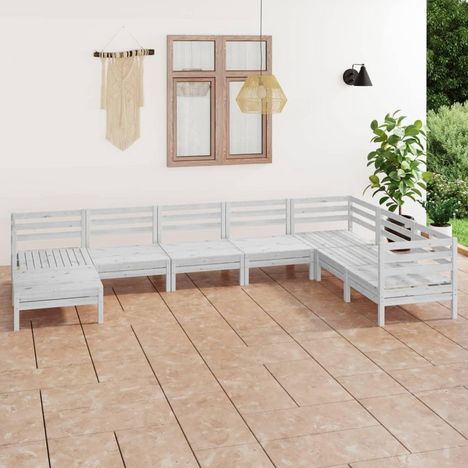 Salon de jardin 8 pcs Bois de pin massif Blanc
