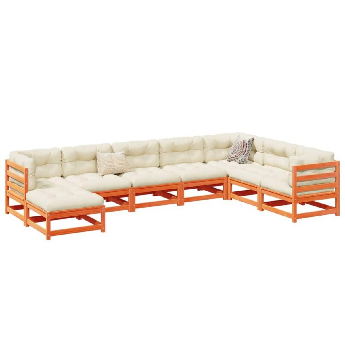 Salon de jardin 8 pcs marron cire bois de pin massif