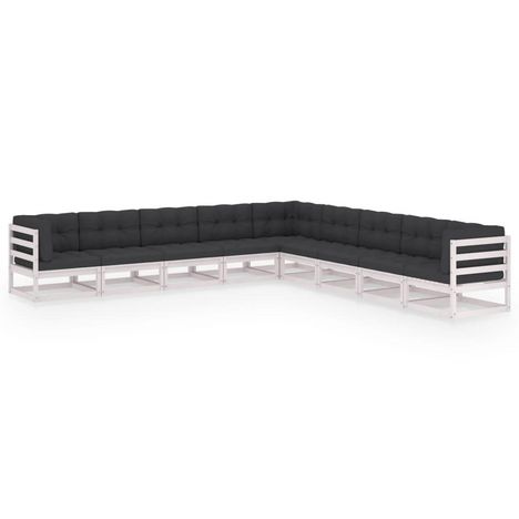 Salon de jardin 9 pcs avec coussins Blanc Bois de pin massif