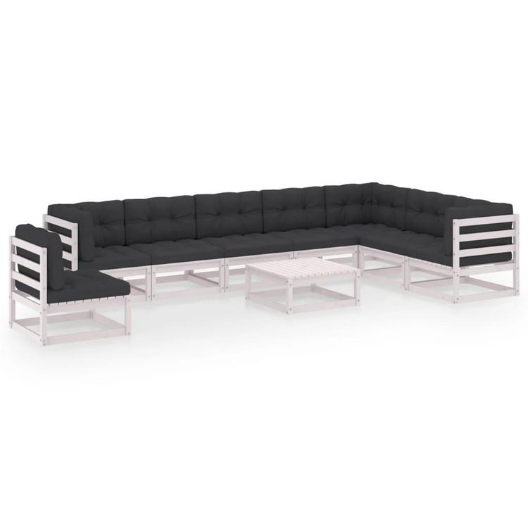 Salon de jardin 9 pcs avec coussins Blanc Bois de pin massif