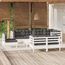 Salon de jardin 9 pcs avec coussins blanc bois de pin massif