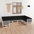 Salon de jardin 9 pcs avec coussins Blanc Bois de pin massif