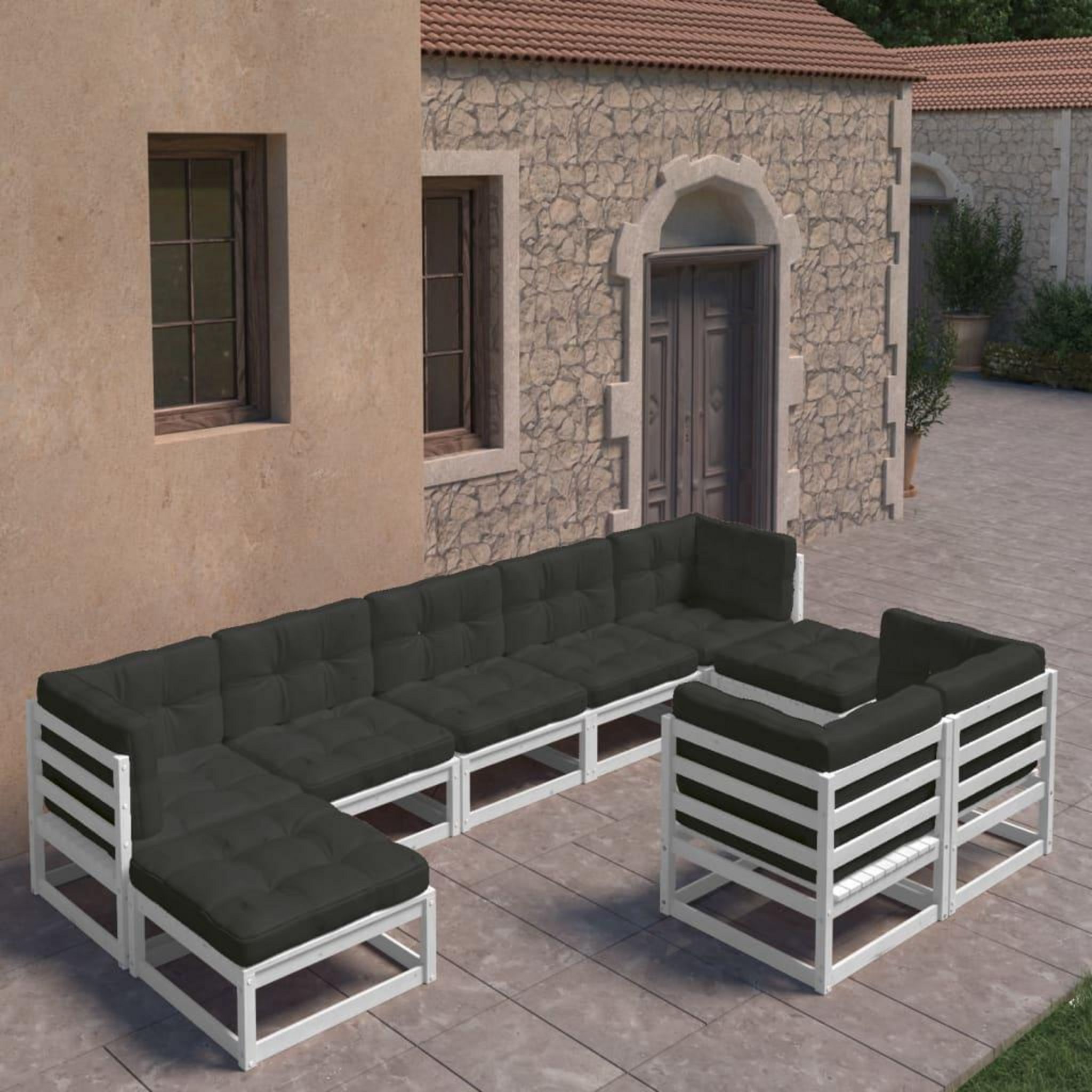 Salon de jardin 9 pcs avec coussins Blanc Bois de pin massif