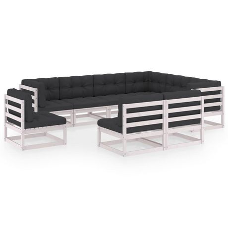 Salon de jardin 9 pcs avec coussins Blanc Bois de pin massif