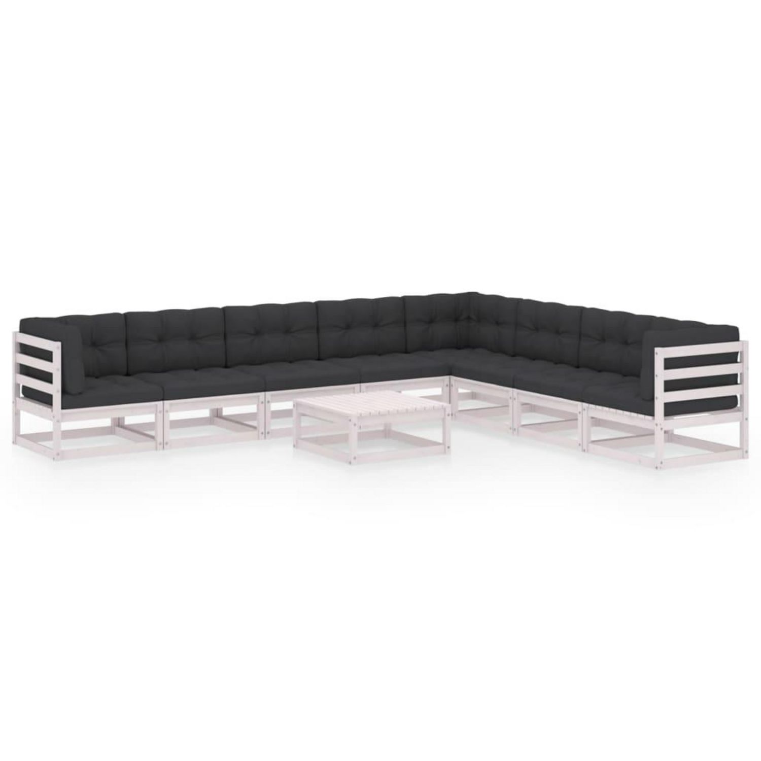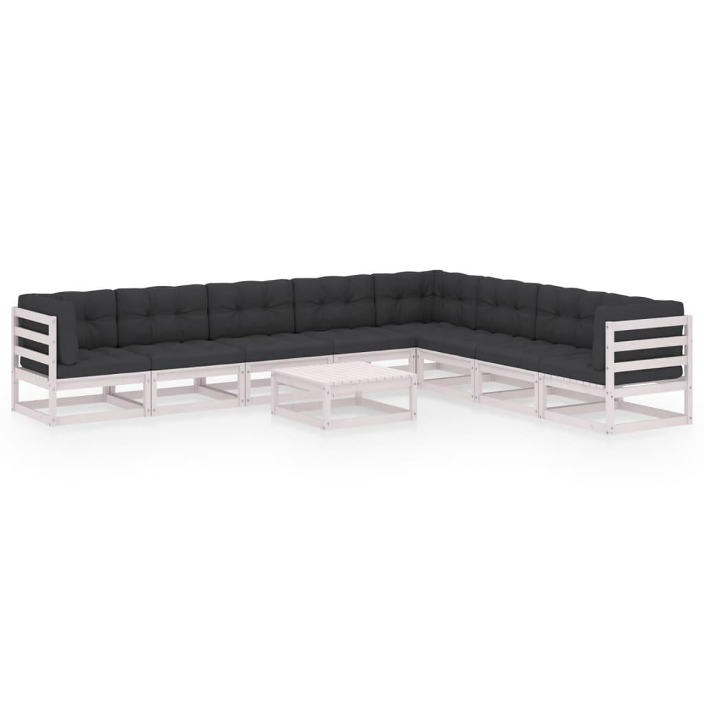 Salon de jardin 9 pcs avec coussins Blanc Bois de pin massif