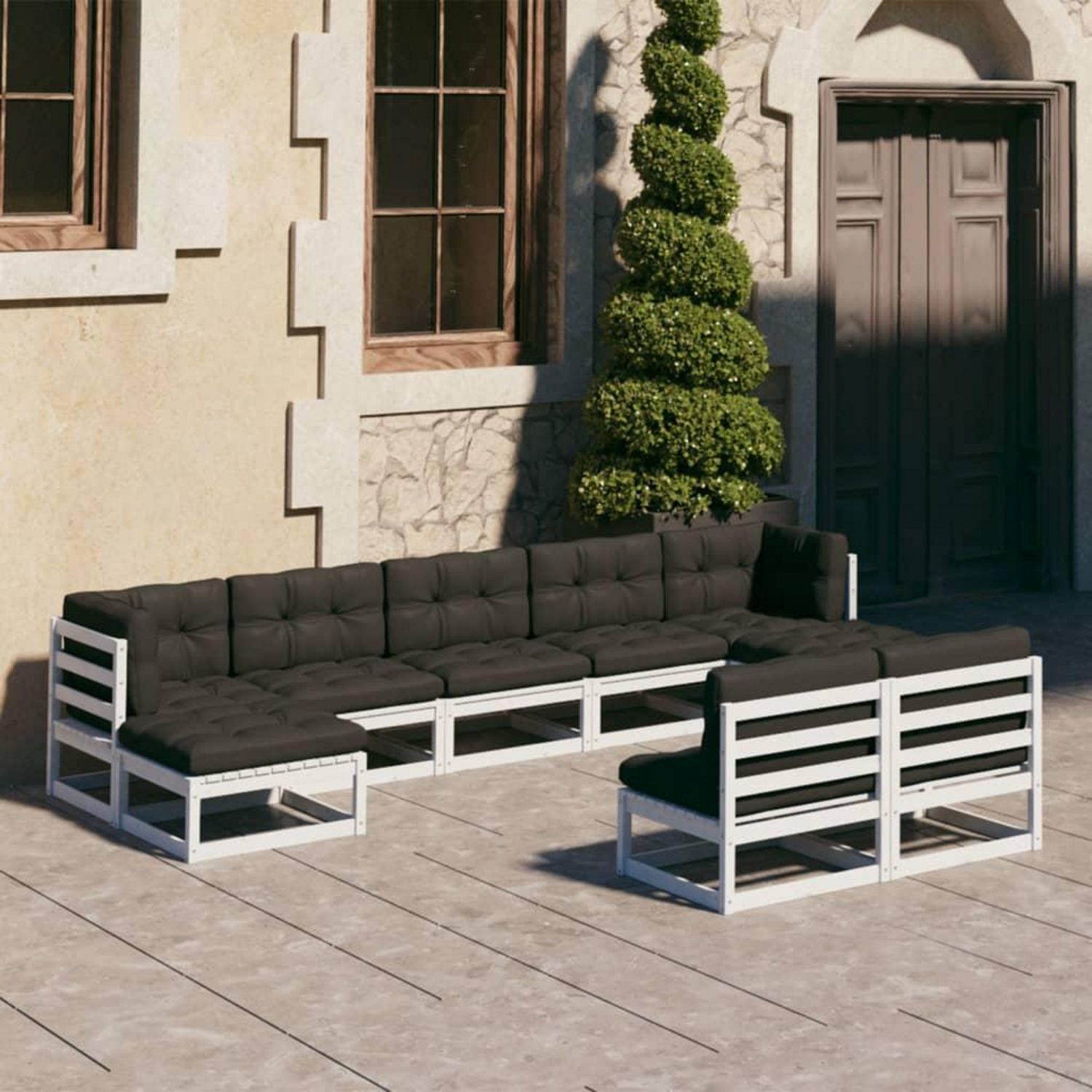 Salon de jardin 9 pcs avec coussins Blanc Bois de pin massif