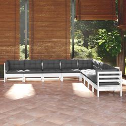 Salon de jardin 9 pcs avec coussins blanc bois de pin massif
