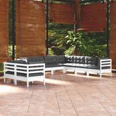 Salon de jardin 9 pcs avec coussins blanc bois de pin massif
