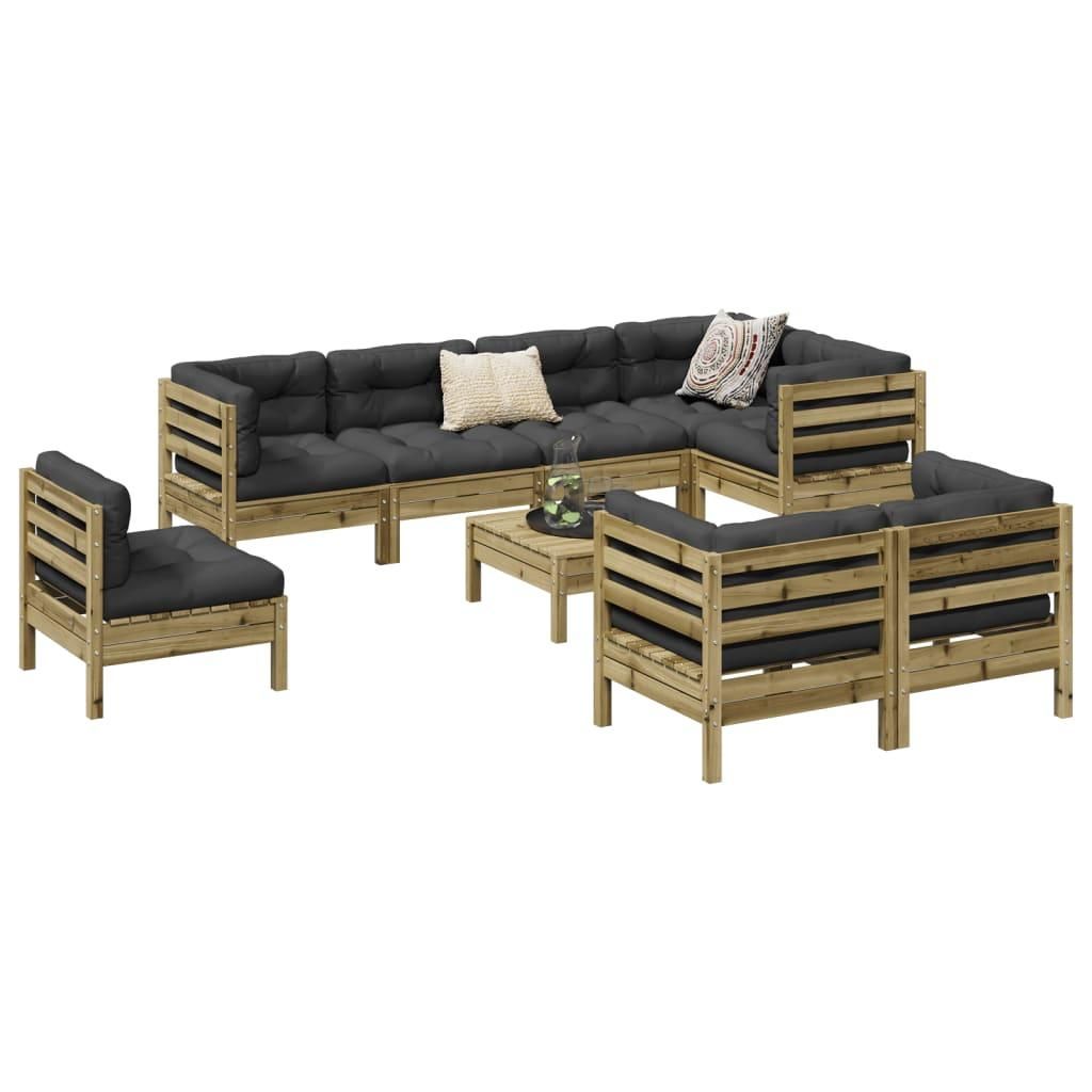 Salon de jardin 9 pcs avec coussins bois de pin impregne