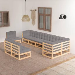 Salon de jardin 9 pcs avec coussins Bois de pin massif