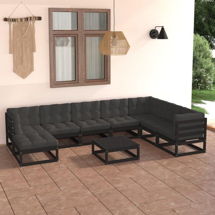 Salon de jardin 9 pcs avec coussins Bois de pin massif