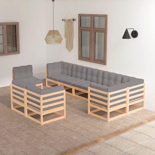 Salon de jardin 9 pcs avec coussins Bois de pin massif