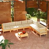 Salon de jardin 9 pcs avec coussins creme bois de pin massif