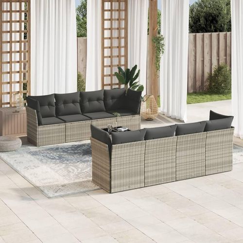 Salon de jardin 9 pcs avec coussins gris clair resine tressee