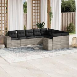 Salon de jardin 9 pcs avec coussins gris clair resine tressee