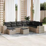 Salon de jardin 9 pcs avec coussins gris clair resine tressee