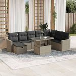 Salon de jardin 9 pcs avec coussins gris clair resine tressee