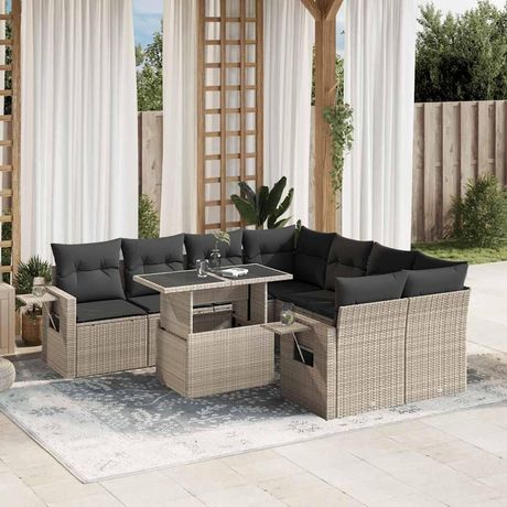 Salon de jardin 9 pcs avec coussins gris clair resine tressee