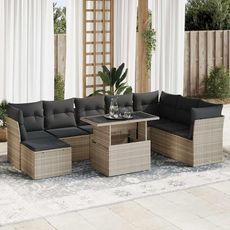 Salon de jardin 9 pcs avec coussins gris clair resine tressee