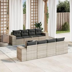Salon de jardin 9 pcs avec coussins gris clair resine tressee