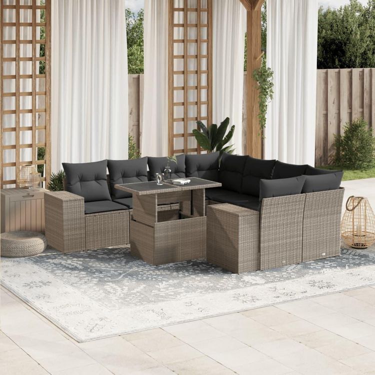 Salon de jardin 9 pcs avec coussins gris clair resine tressee