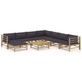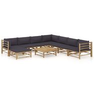 Salon de jardin 9 pcs avec coussins gris fonce bambou