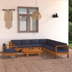 Salon de jardin 9 pcs avec coussins gris fonce Bois d'acacia