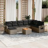 Salon de jardin 9 pcs avec coussins gris resine tressee