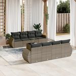 Salon de jardin 9 pcs avec coussins gris resine tressee